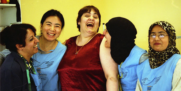 I found Petites-Mains when I was looking for a place to volunteer and practise my new language skills. The organization attracted me because of its practical focus – training women and getting them jobs – and because it was started by a nun. The managers at Petites-Mains agreed that yoga, with its physical and spiritual benefits, would be a good addition to the program, if I could teach in French.