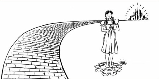 Dorothy to her destination; the need for brains, heart and courage as companions;