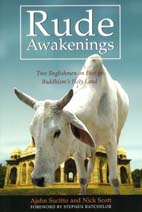 Rude Awakenings is Sucitto and Scott’s first-person, no-holds barred account of their journey through India’s Middle Land. Ajahn Sucitto, a senior monk in the Thai forest tradition, is known for his austerity, deep knowledge of the Dharma and complete ineptitude when it comes to anything worldly. As a monk, he follows the 227 monastic precepts to the letter as a form of spiritual discipline and a desire to maintain the 2500-year old tradition.