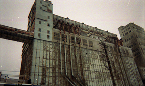 My friend and I dug aside the fresh snow at a place along the bottom of the chain-link fence. He pulled the fence up as I slid underneath on my back, and he followed. We were in the glow of nighttime city lights, under a steady fall of snow, and towering above us, the massive grain elevator that we’d be exploring stood by the Old Port. The silo was built in 1921 and abandoned in the 1980’s, and it dwarfs any other buildings that this city has to offer. It’s laid out on the waterfront like a behemoth, made up of tunnels and towers, veined with pipes, and painted with corrosion. Every inch of it is wearing away in some weird and wonderful way. To my eyes the dilapidated silo was one of the most beautiful structures I have ever seen.